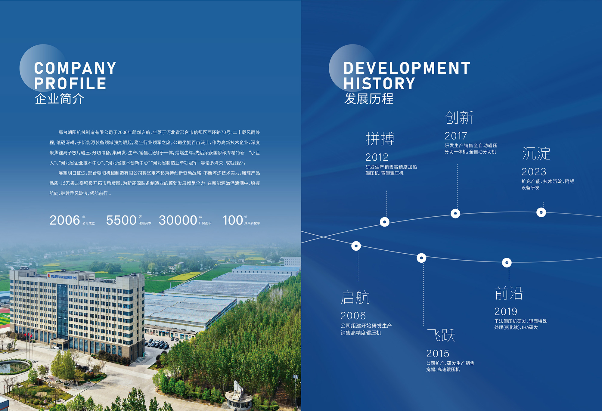 邢臺朝陽機械制造有限公司是新能源裝備領域的璀璨之星,位于河北省邢臺市信都區(qū)會寧鎮(zhèn)(邢臺會寧綜合物流聚集地) 70 號,自2006 年成立以來,歷經 20 年砥礪奮進,已成長為新能源裝備領域的行業(yè)領軍者。公司占地 100 余畝,是集鋰離子電池極片... [更多>>]