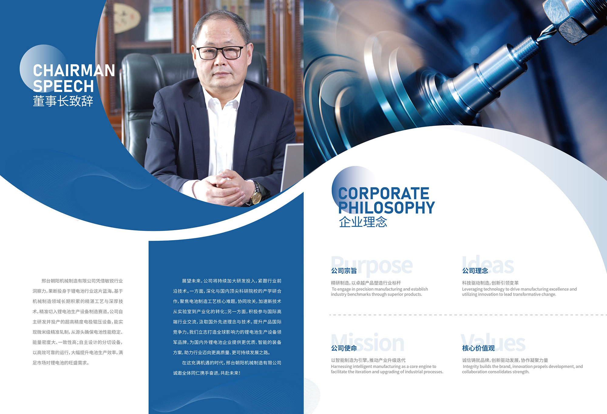 邢臺朝陽機(jī)械制造有限公司是新能源裝備領(lǐng)域的璀璨之星,位于河北省邢臺市信都區(qū)會(huì)寧鎮(zhèn)(邢臺會(huì)寧綜合物流聚集地) 70 號,自2006 年成立以來,歷經(jīng) 20 年砥礪奮進(jìn),已成長為新能源裝備領(lǐng)域的行業(yè)領(lǐng)軍者。公司占地 100 余畝,是集鋰離子電池極片... [更多>>]